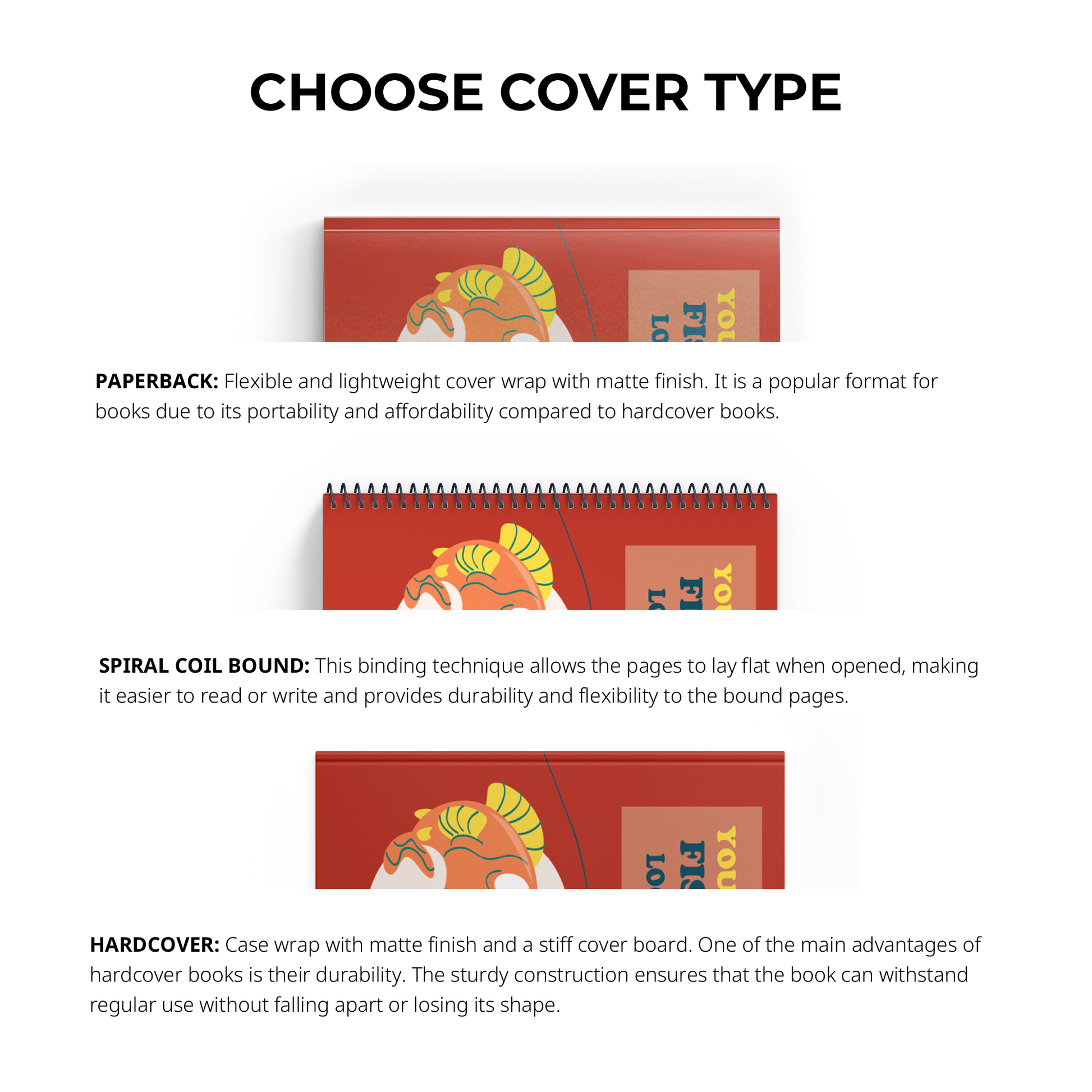 1. Hardcover - Β Case wrap with matte finish and a stiff cover board. One of the main advantages of hardcover books is their durability. The sturdy construction ensures that the book can withstand regular use without falling apart or losing its shape.