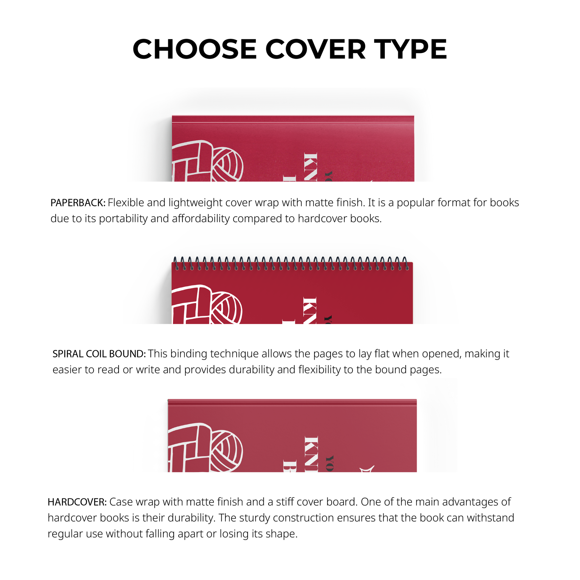 📗 Cover page types: Hardcover, Paperback, Coil bound.